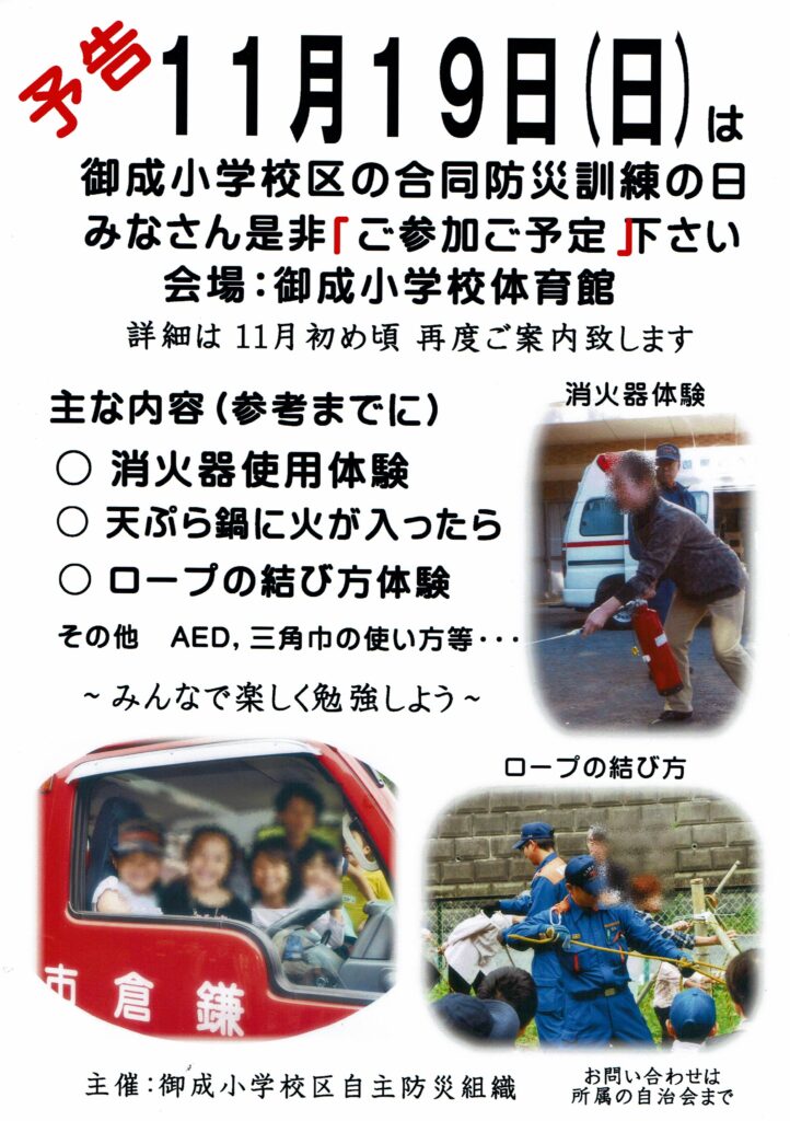 【11/19(日)】御成小学校区 合同消防訓練のご案内
